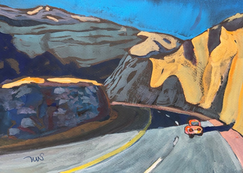 I recently drove across New Mexico and was inspired by the sky, mountains, and trees along the highway near Albuquerque.