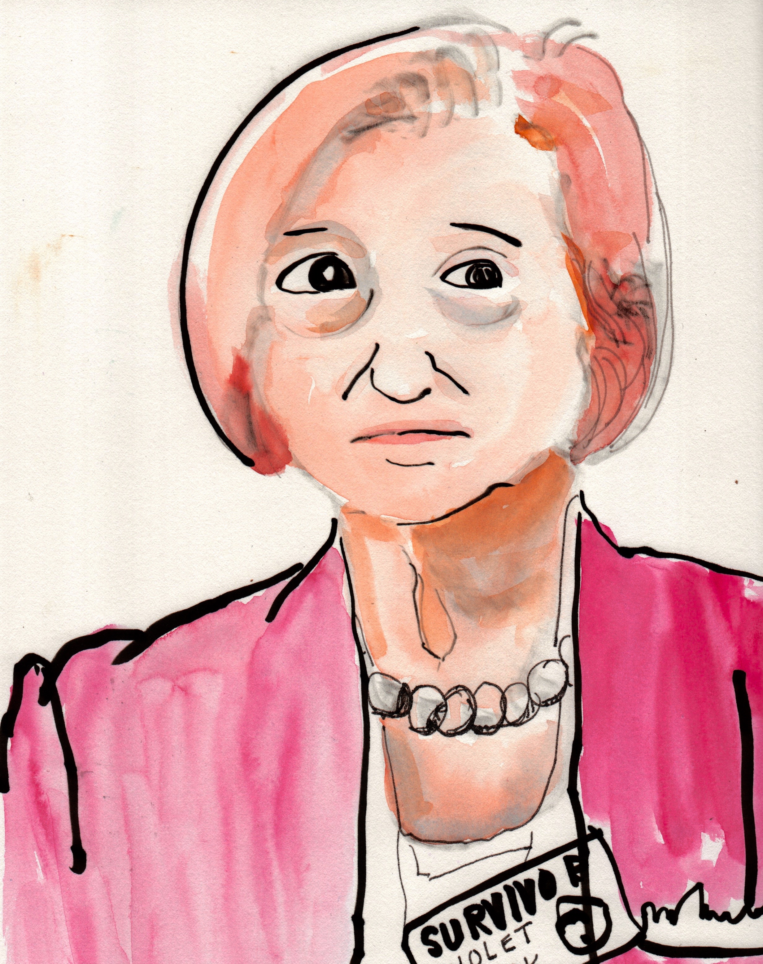This is the first time I sketched from a video. I was so moved by listening to a recording of our relative that I drew her 8 times, attempting each time to interpret her beauty, strength, integrity and generous spirit in an image. The video recording is an interview she gave to the United States Holocaust Memorial Museum Oral History Branch. What moved me so much was the contrast between the brutal facts that caused her family to perish and her own warm and loving outlook. She stood in line with her mother and four siblings at Auschwitz and was sorted into lines of work or death yet went on to live a full and long life as the matriarch of a new family she made with her husband Chicago. In the last minute of her recording, this speaker of truth sounds a warning for us, “It is happening all over again, not just with Jews. It’s happening in Africa, it happened in Yugoslavia. It’s happening.”