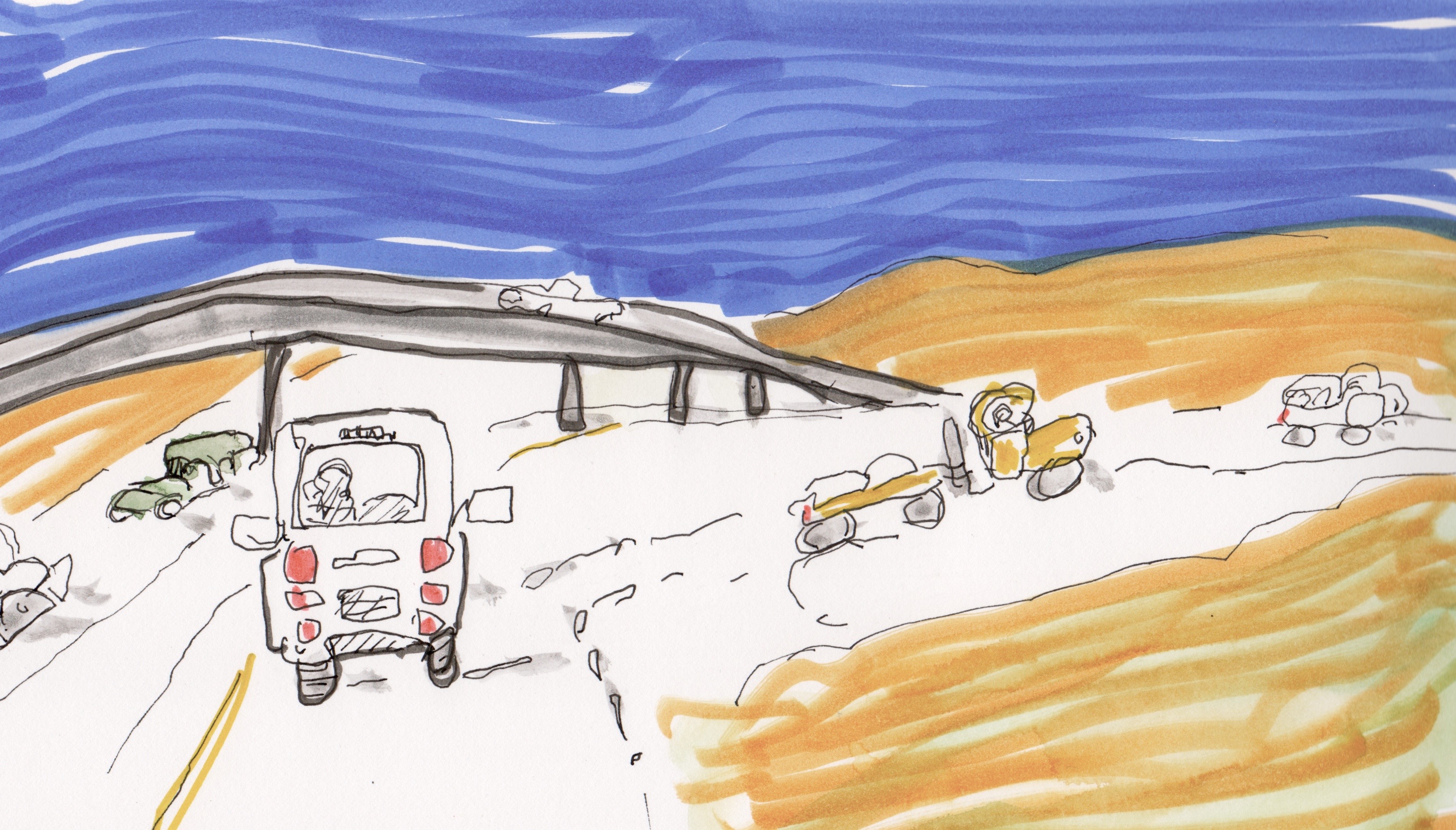 Although I sketched on the way to Berkeley, the image will not post from my phone so I will update early next week.