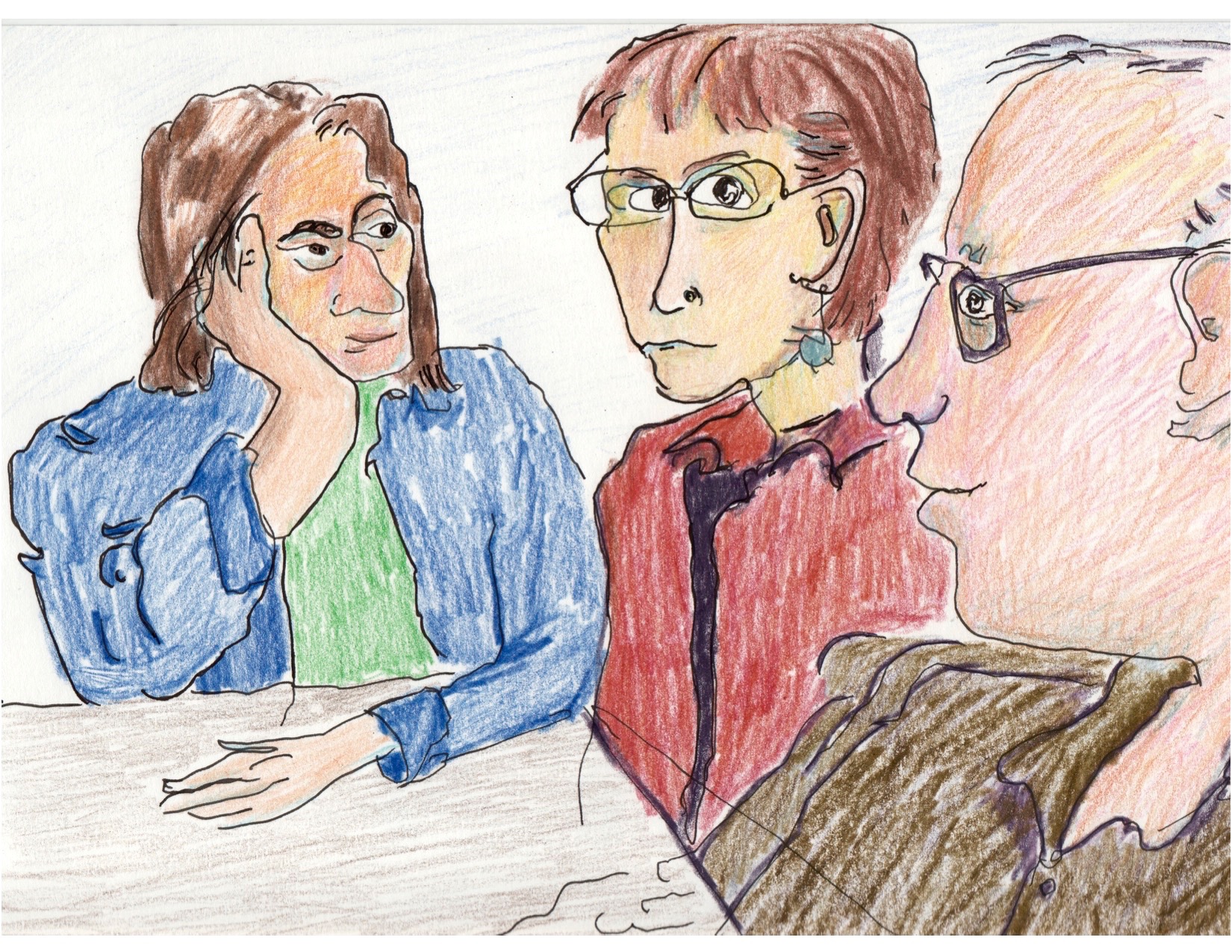 Late Friday evening is an odd time for me to be sketching. But we were with old friends and I was able to pull out my sketchbook and get several quick sketches across the last hour of the night. By then people were tired, the group was about ready to disband and conversation had come to an end. I like this sketch because it suggests three friends in three different mental spaces. There is no eye contact among the group, no one is talking but it is comfortable and people are reluctant to leave.