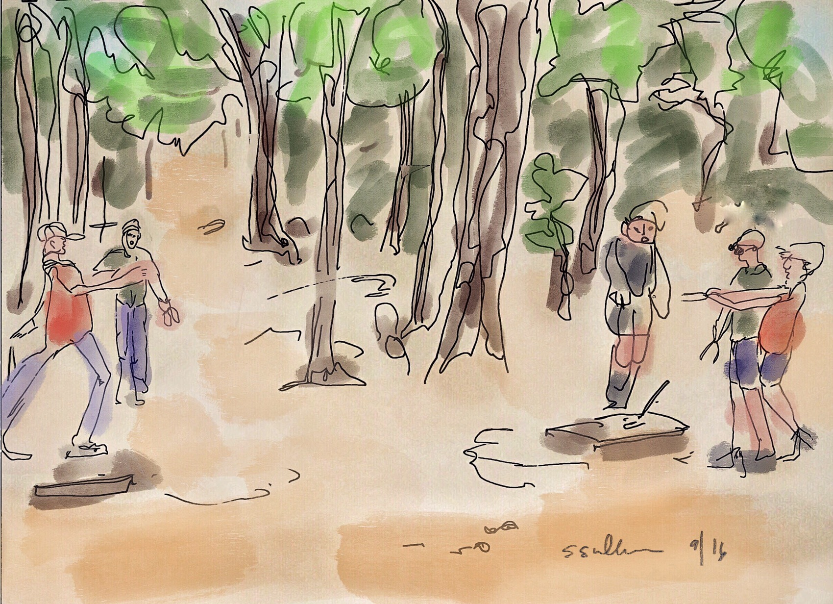 This is an ink sketch with color added later with Procreate.