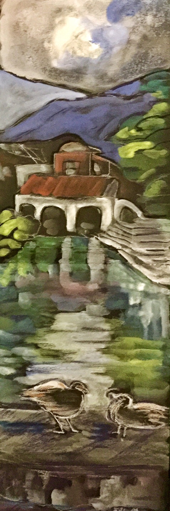 This is a pastel and gouache sketch on both side of an 8 X 5 inch Moleskine notebook.