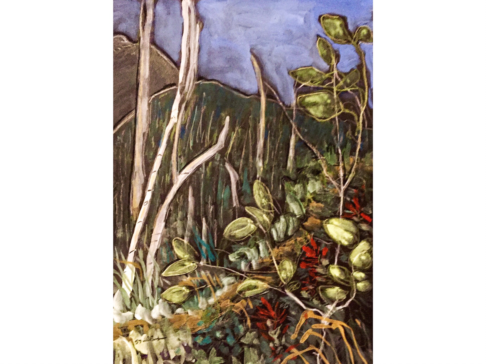I worked mostly with pastel pencil and made several value sketches of the mountains and vegetation. I feel I am making progress on painting mountains but this pastel and gouache sketch of the plants along a portion of the trail is my favorite. This gouache and pastel sketch is in a 12 x 12 inch black Derwent sketchbook.