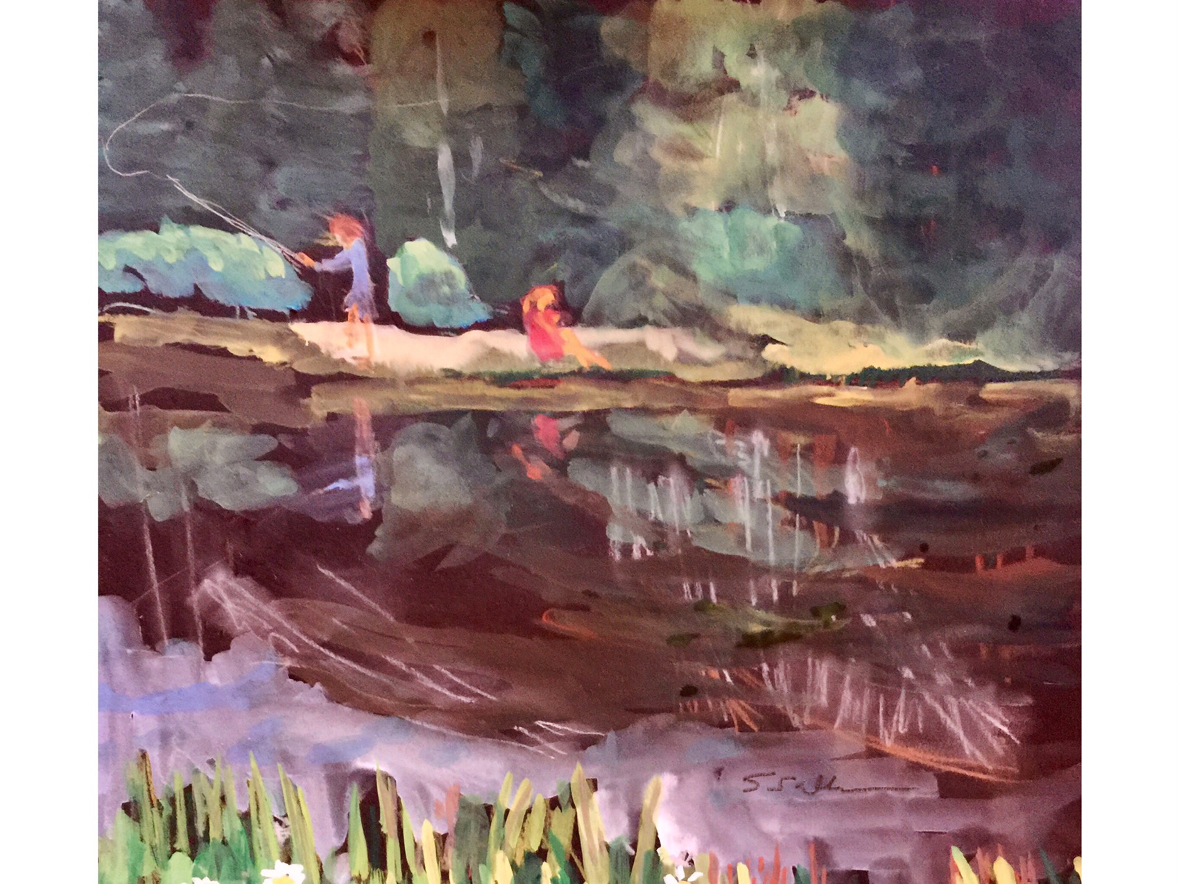 This is a pastel and gouache sketch in a 12 X 12 inch Derwent Black Paper sketchbook.
