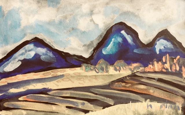 I am in Montrose Colorado for the weekend and could not resist quickly sketching this view across the fields to the San Juan Mountains!