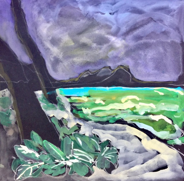 This morning I got up early and walked down to the beach for this sketch. Yesterday I painted the view along the beach looking south. Today’s sketch is from the same spot but looking north.