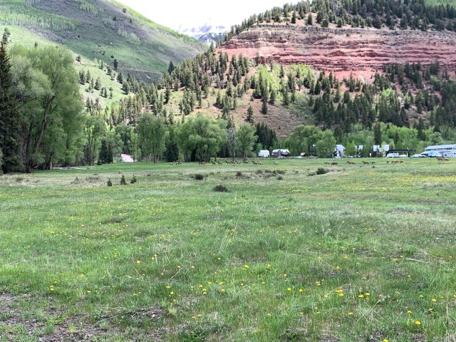 Yesterday while I was painting the iconic view of Ajax Peak, which towers over Telluride, a herd of elk came to the meadow which was on my left. Despite my excitement at seeing a herd of 50 elk, it was too late for me to switch my painting topic.