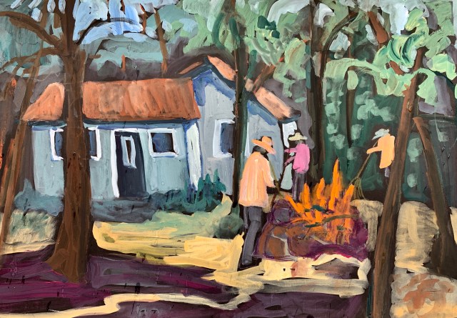 Thank you Deborah, for commenting on the contrast of people and fire, I painted this so quickly that I did not not think it through, and now I see the color resonance and briskly moving people too.