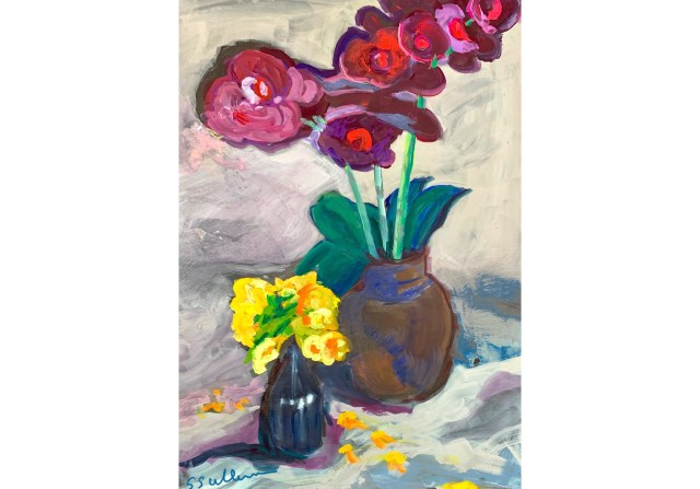 I met up with some friends this morning and we painted flowers in vases, which is a pretty good way to paint on a hot summer day.