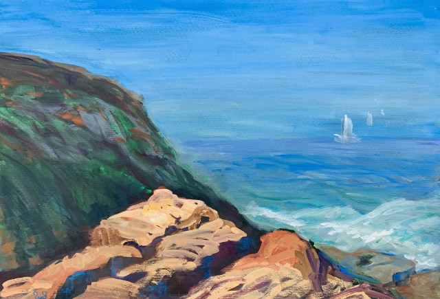 > Sarah Sullivan posted: ” I painted this morning at Cabrillo National > Monument from a rock shelf looking to the west. The fog was lifting but it > still obscured the horizon line.” >