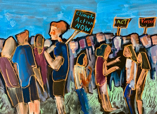 I went to an afternoon gathering at the Federal Building. Both of these sketches show people milling about and talking to each other before the speeches started. I wanted to draw the young speakers but I could not see them through the crowd. May great good come from this worldwide upwelling in support of our Mother Earth and the Green New Deal!