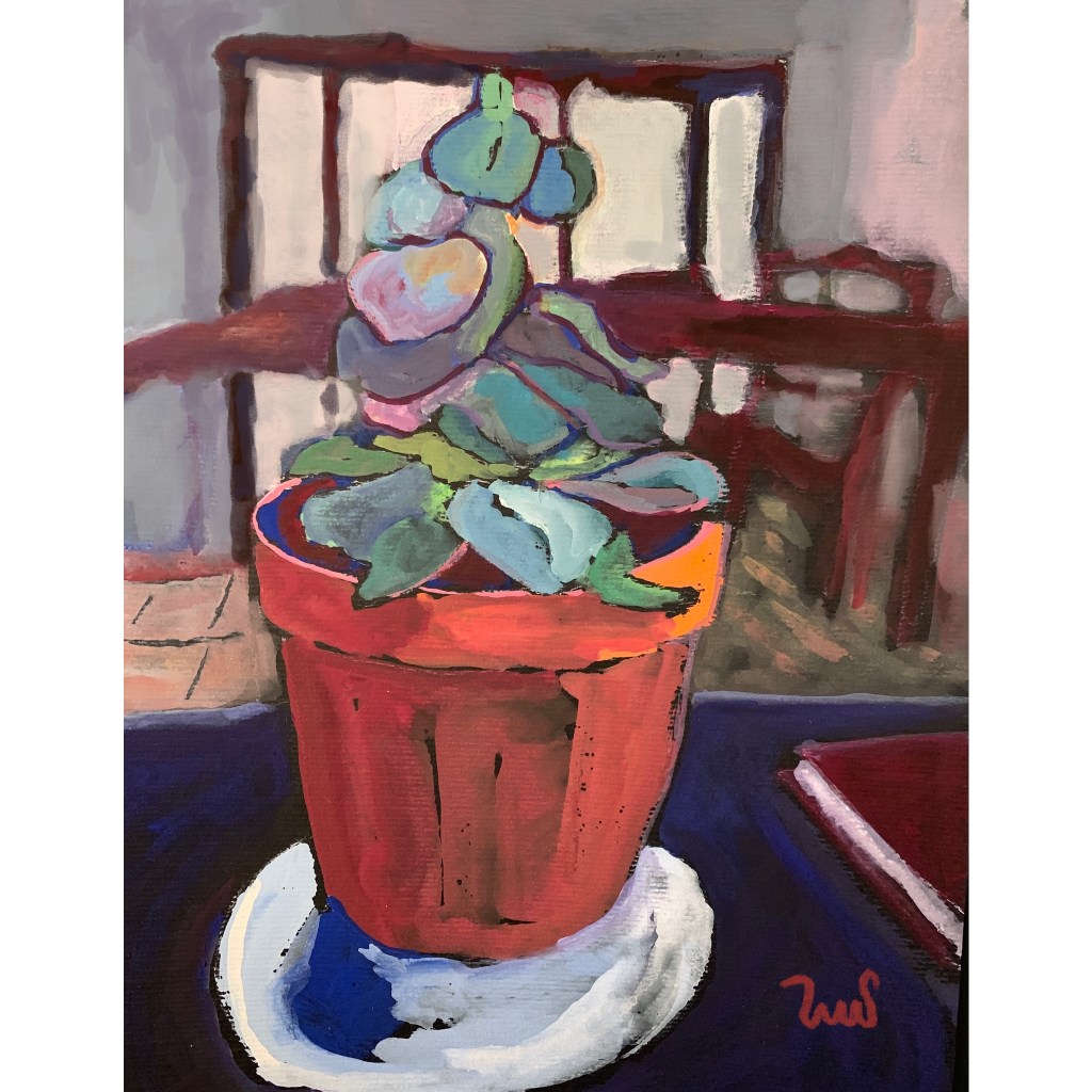 This little aloe plant exerts a cheerful presence on the coffee table. Its petals have a mix of muted colors that, as much as I look at them, I can’t quite describe with my paint brush.