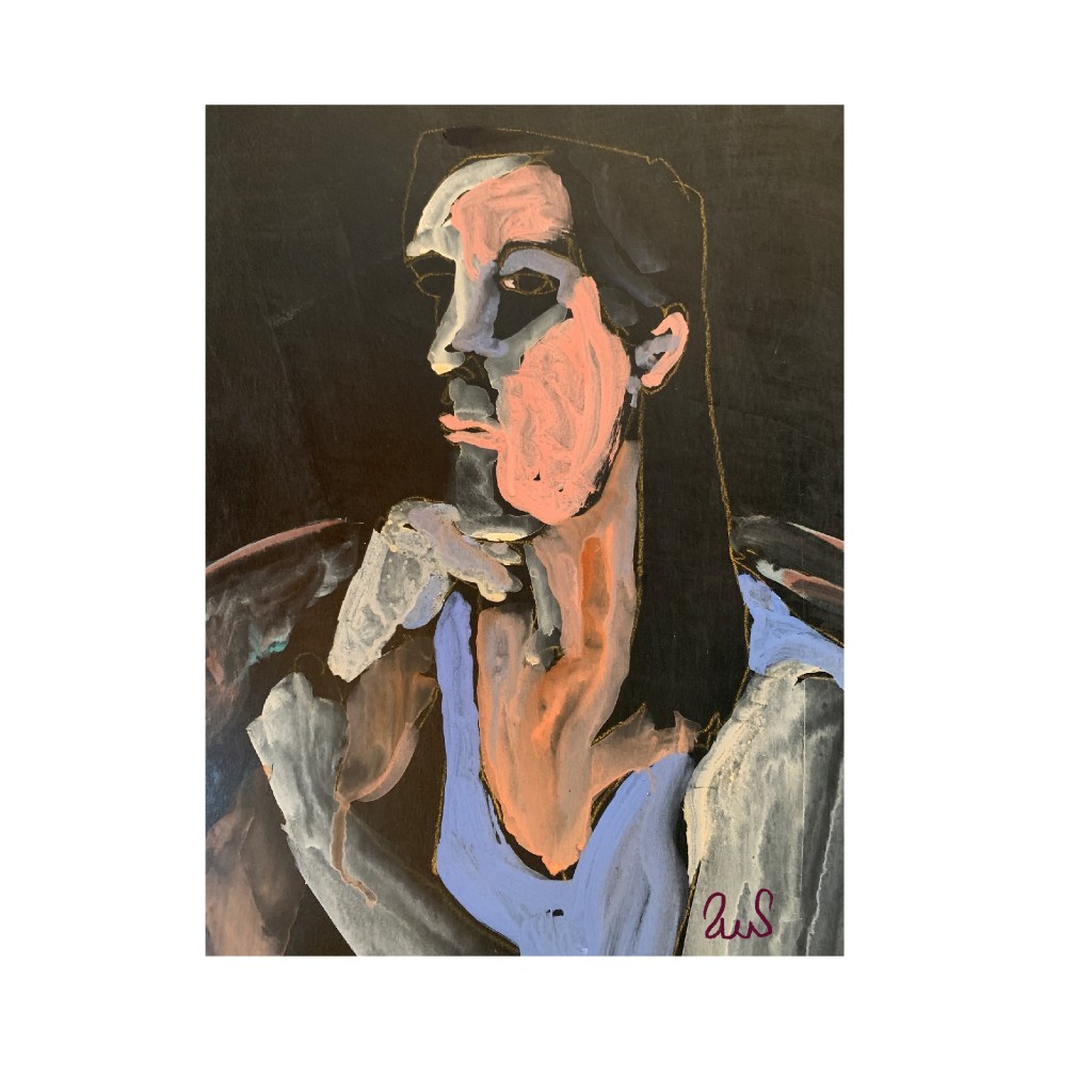 I prepared my black Bristol board with several coats of acrylic gloss medium ahead of time, so it had some of the non absorbent characteristics of yupo paper. I worked on an easel so the gouache would flow downwards and make interesting textures that emphasized the models expressiveness.
