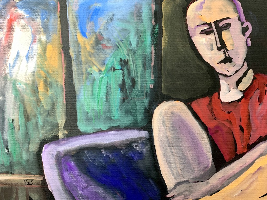 The Zoom model tonight had a reflective air about him and I tried to catch his expression in this sketch. I also liked the simple shapes of his face and worked to show those too.