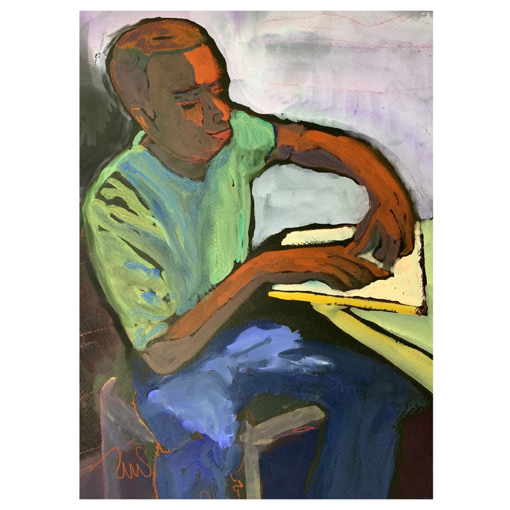 Our model for our Tuesday Zoom sketching session was a wood block artist and he posed as though he were carving. It was a beautiful pose with strong light and shadow.