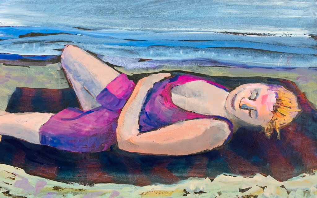 Our Tuesday night Zoom model took a reclining pose for the evening. Perhaps because I was at the beach today, she reminded me of a sunbather. So I filled in the background accordingly.