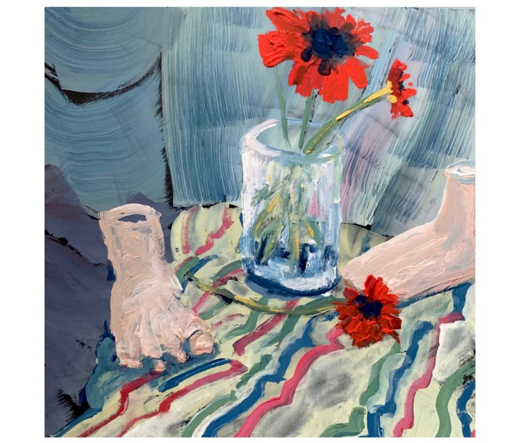 In August, my Tuesday evening Zoom group shifted to still lives, at first due to lack of models but later because the subject matter grabbed us. These pieces are from the two evenings that our setup featured flowers.