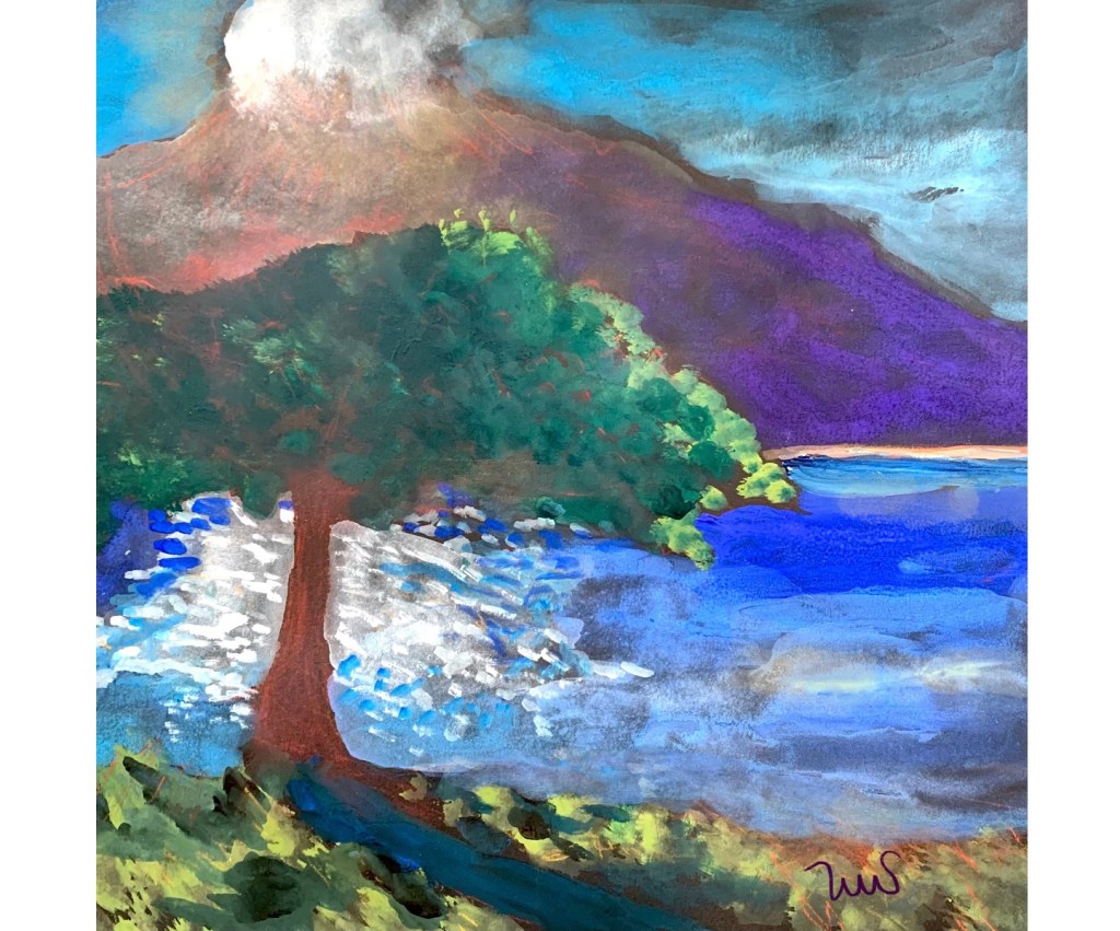 This is a view of the sun rising over the Haleakala Volcano in Maui. The volcano is still in shadow, but the sun is bouncing light onto the mountainside. Where the sun hits the water directly, there is a blinding glare. I had trouble capturing all the types of light; perhaps I need more darks in the tree.