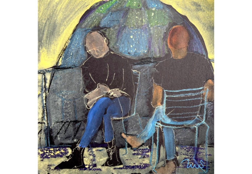 After spending most of the day looking at the art exhibitions at the Carlsberg Glyptotek in Copenhagen, I rested and sketched on its rooftop terrace. Other people had the same idea, including two men who sat across the way.