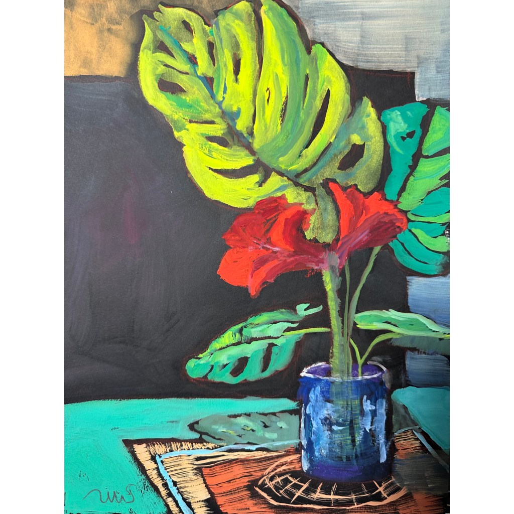 It is Tuesday, which means it is still-life painting on Zoom. Tonight we painted an amaryllis along with several philodendron leaves. I like a shapely philodendron leaf because its irregular border and empty spaces are so much fun to draw.
