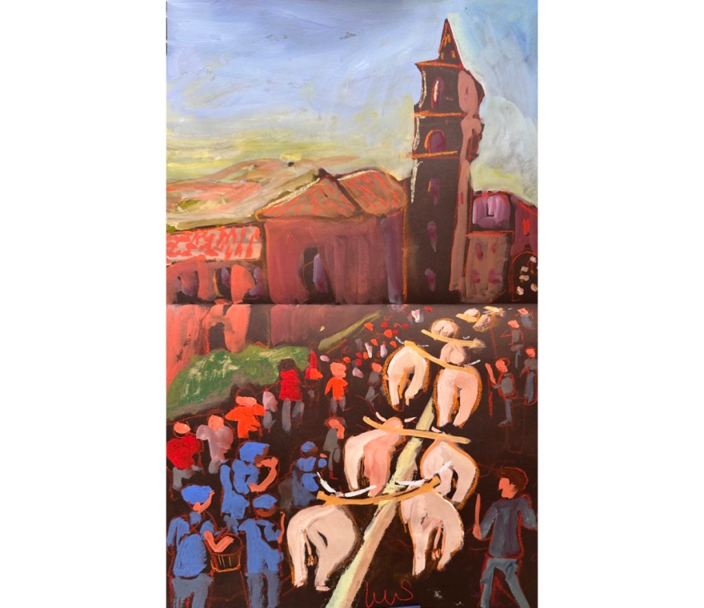 We came to a small Italian village, Pietrapertosa, for a few days and found the town celebrating the festival of Saint Antonio, an ancient ritual related to the renewal of life involving the symbolic marriage of two trees. Much of this event took place in the street below our third-floor rental, so we had a terrific view of an impressive parade with teams of oxen dragging an enormous tree trunk to the church.