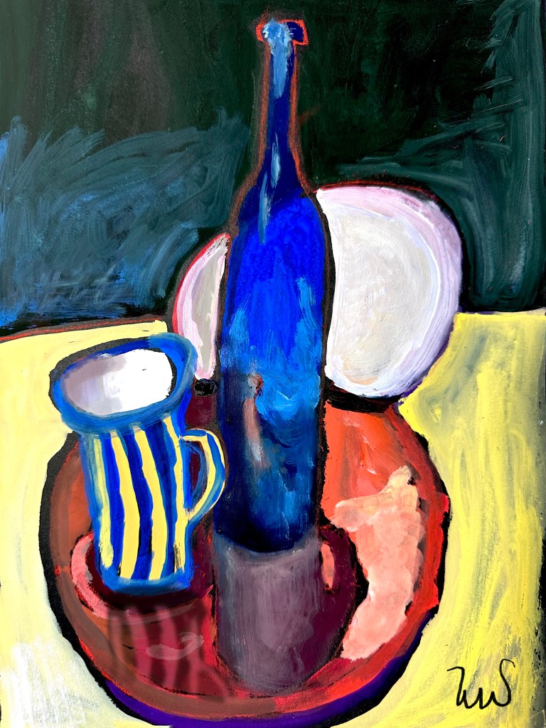 This scene, set up by a friend, reminded me that fall colors are nearing. It felt cozy, with the light bouncing off the platter and the deep shadows.
