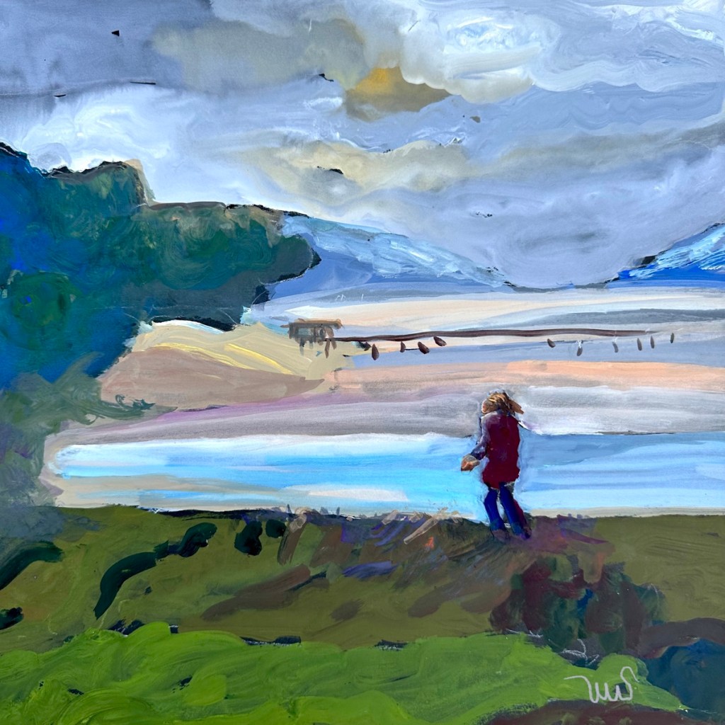 Here is another sketch of Tomales Bay. I saw a young woman walking along the shore, and there was something about her body language that showed how she loved the Bay. I wanted to capture that feeling in this sketch.