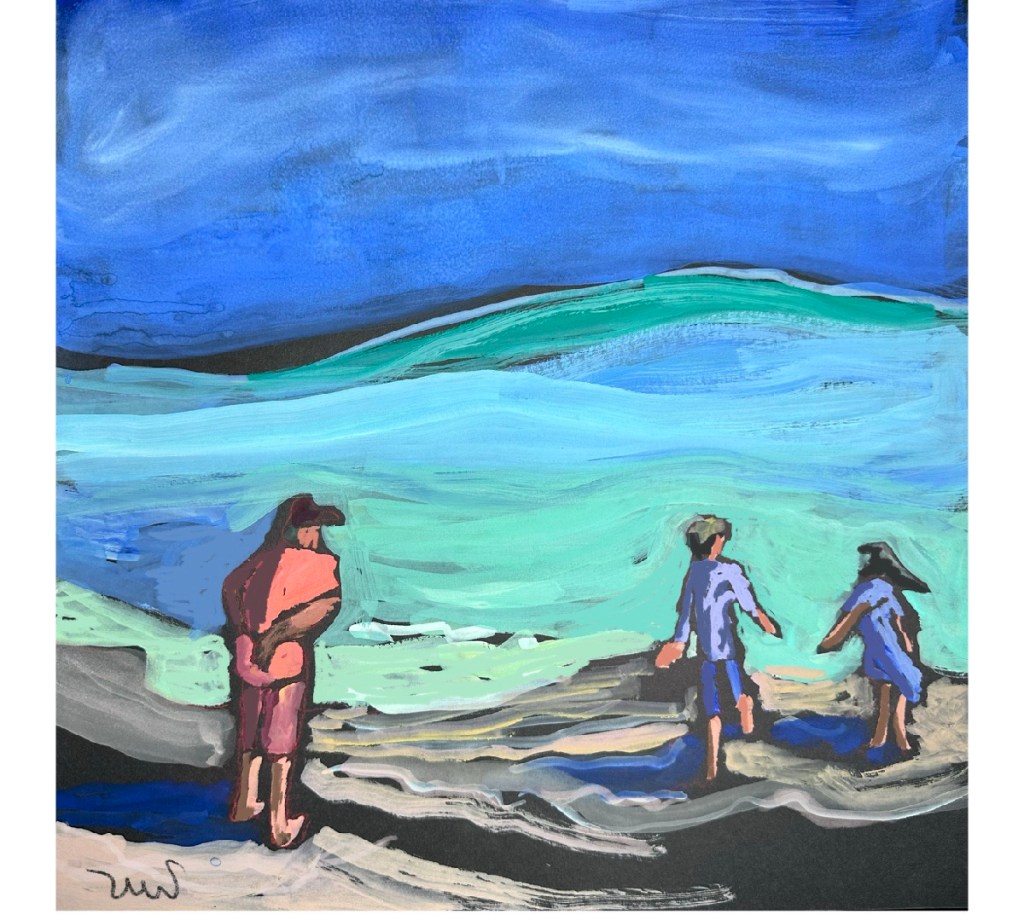 One little group of a father and his two children stayed in front of me long enough to sketch them. I liked how the man fixed his vigilant gaze on his two children as they ran along the shoreline between the waves and wanted to visually convey their blend of joy and protection in this sketch.
