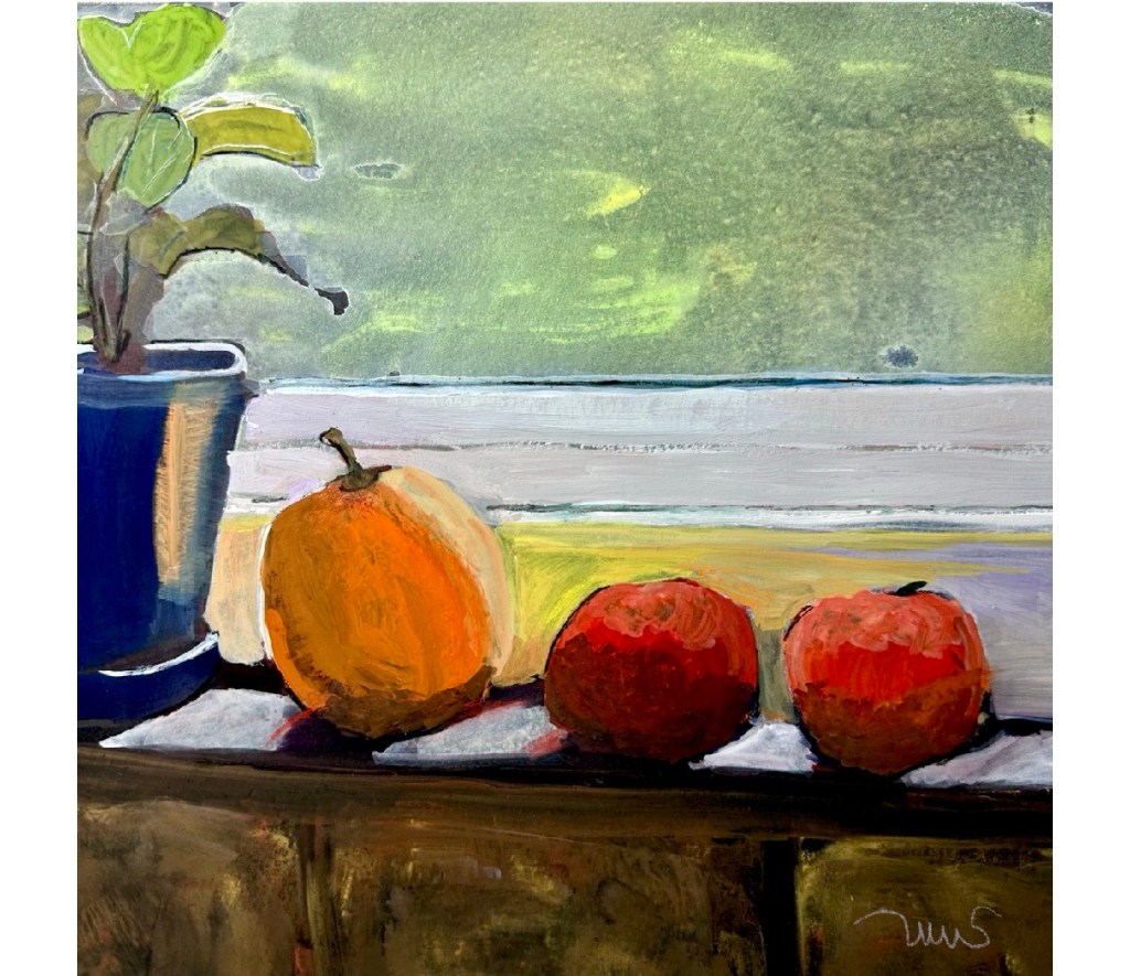 This time of year, on sunny mornings, the sun shines on the kitchen windowsill. I had some citrus sitting there and liked how the light bounced all around, reflecting citrus color on the surrounding surfaces.