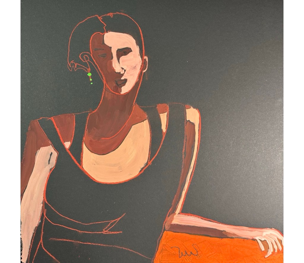 Lovely abstract of a figure with line, color, light, shadow and one earring!