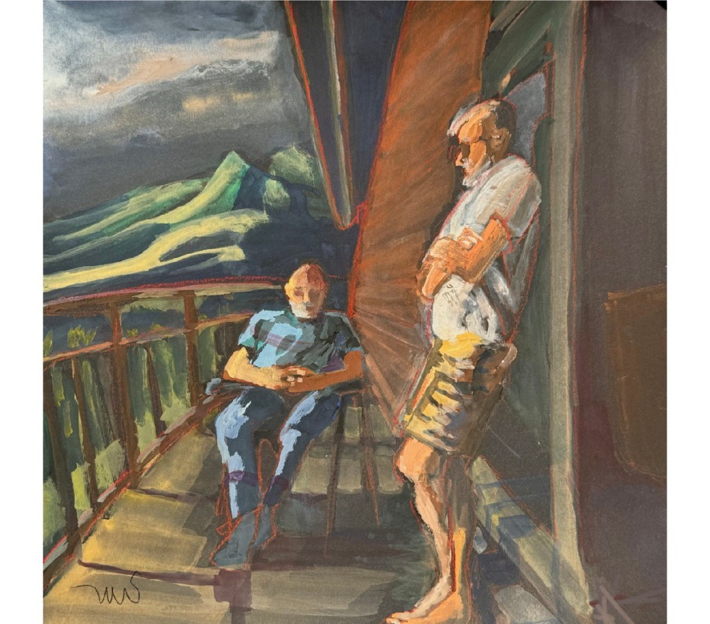 This is from my sketchbook from this past summer. My husband was chatting with his friend and colleague from graduate school, and I was sketching nearby. We were on a balcony in Colorado, enjoying the last light of the day and the warmth of the sun.