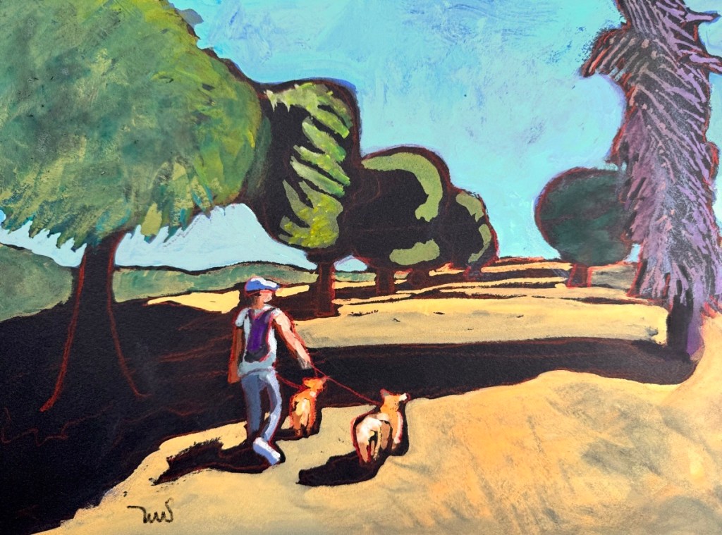 It was hot, but the young man and his dogs did not seem to notice. They walked briskly past me, whereas I was sheltering under a big shade tree at our local reservoir, Lake Murray.