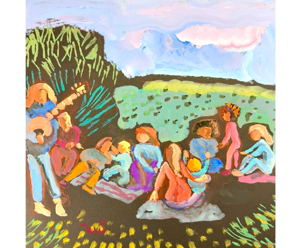 I went to paint Marston House in Balboa Park with the Thursday Plein Air group and expected to paint a grand mansion. Instead, my attention was drawn to a group of toddlers and their parents making music in the park.
