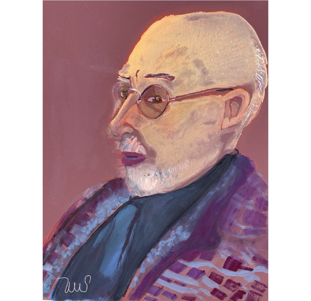 I like this portrait of my husband. I captured his pensive look and quiet mood, perhaps because I was able to work live for the first 15 minutes or so. I drew the big shapes quickly with red pastel chalk and almost as quickly painted the flesh tones. After he got up, I worked for several hours more to develop the variations in his skin color and clothing.