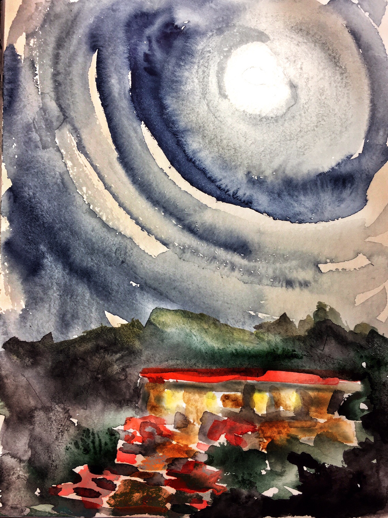 Sketch of the moon and night sky by Sarah Sullivan