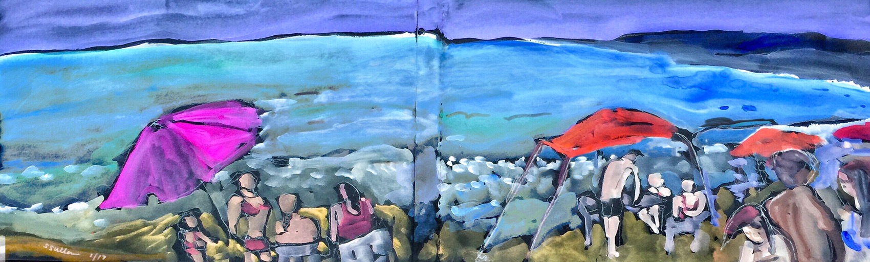 Sketch of people at a beach by Sarah Sullivan