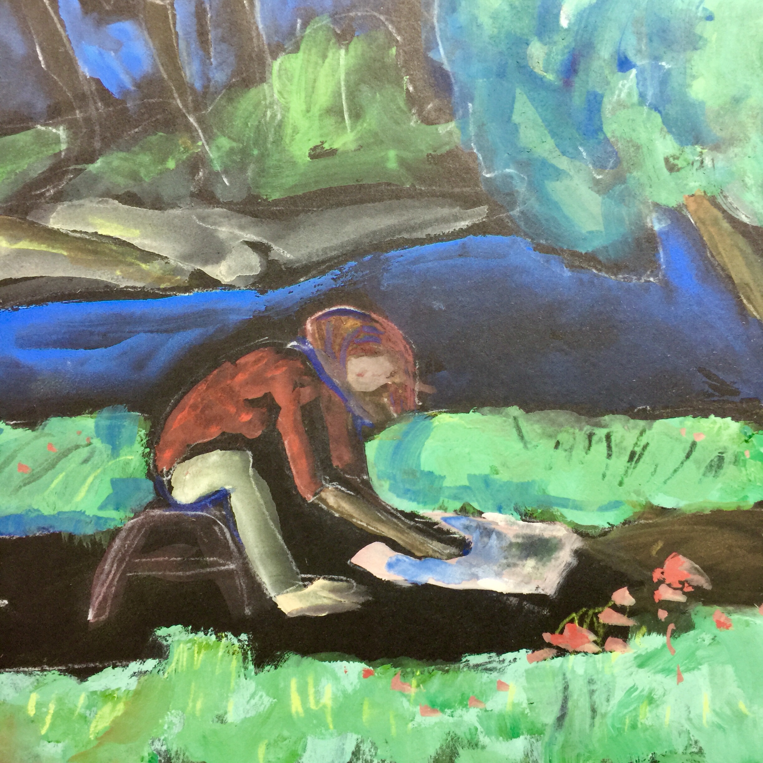 Sketch by Sarah Sullivan of a young artist in the park