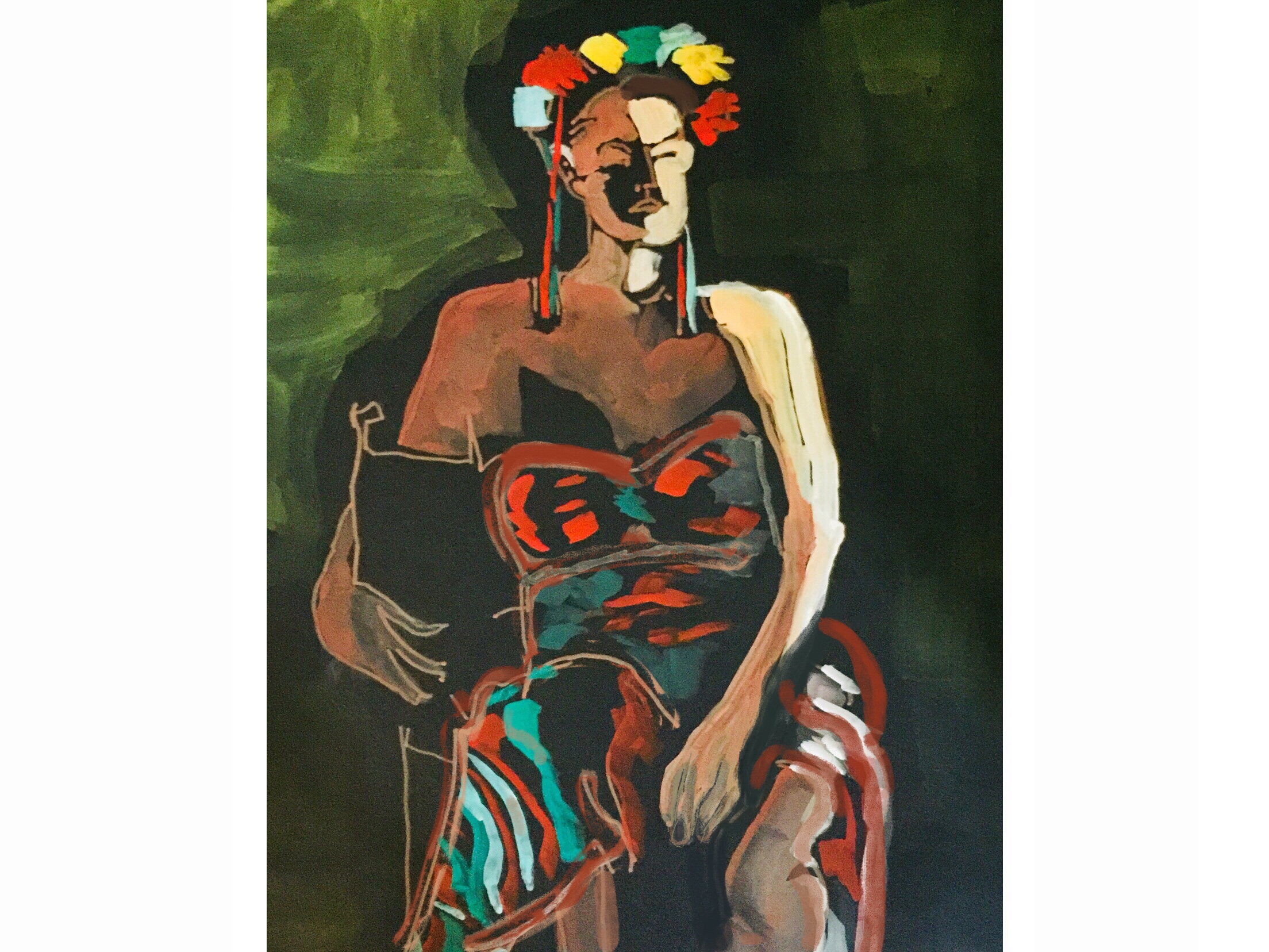 Sketch by Sarah Sullivan of a woman dressed as Frida Kahlo