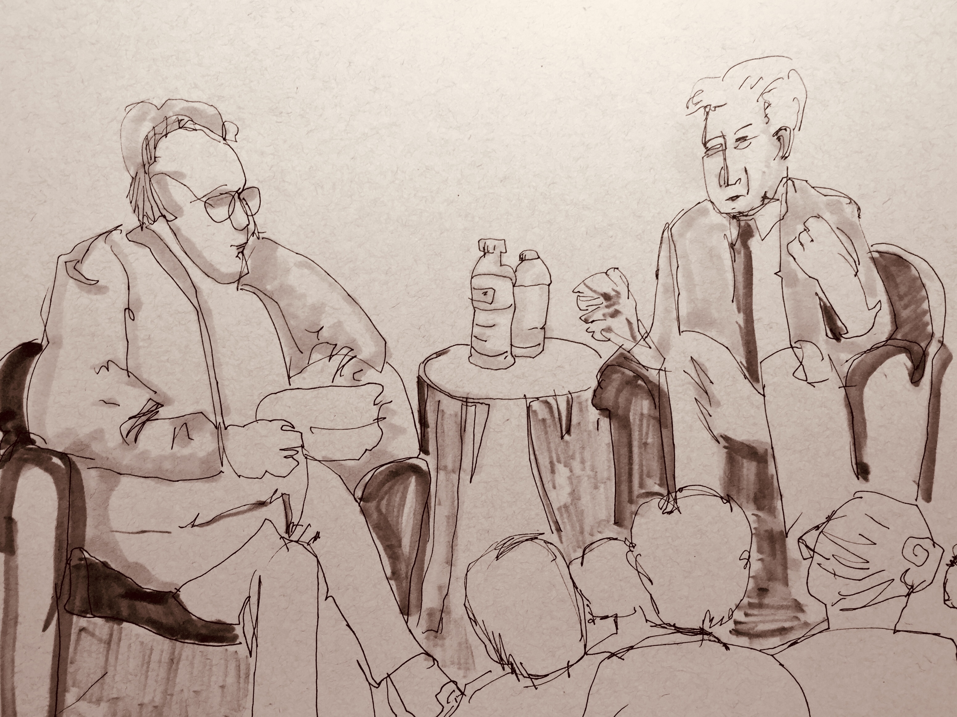 Sketches by Sarah Sullivan made while listening to a conversation with Daniel Ellsberg