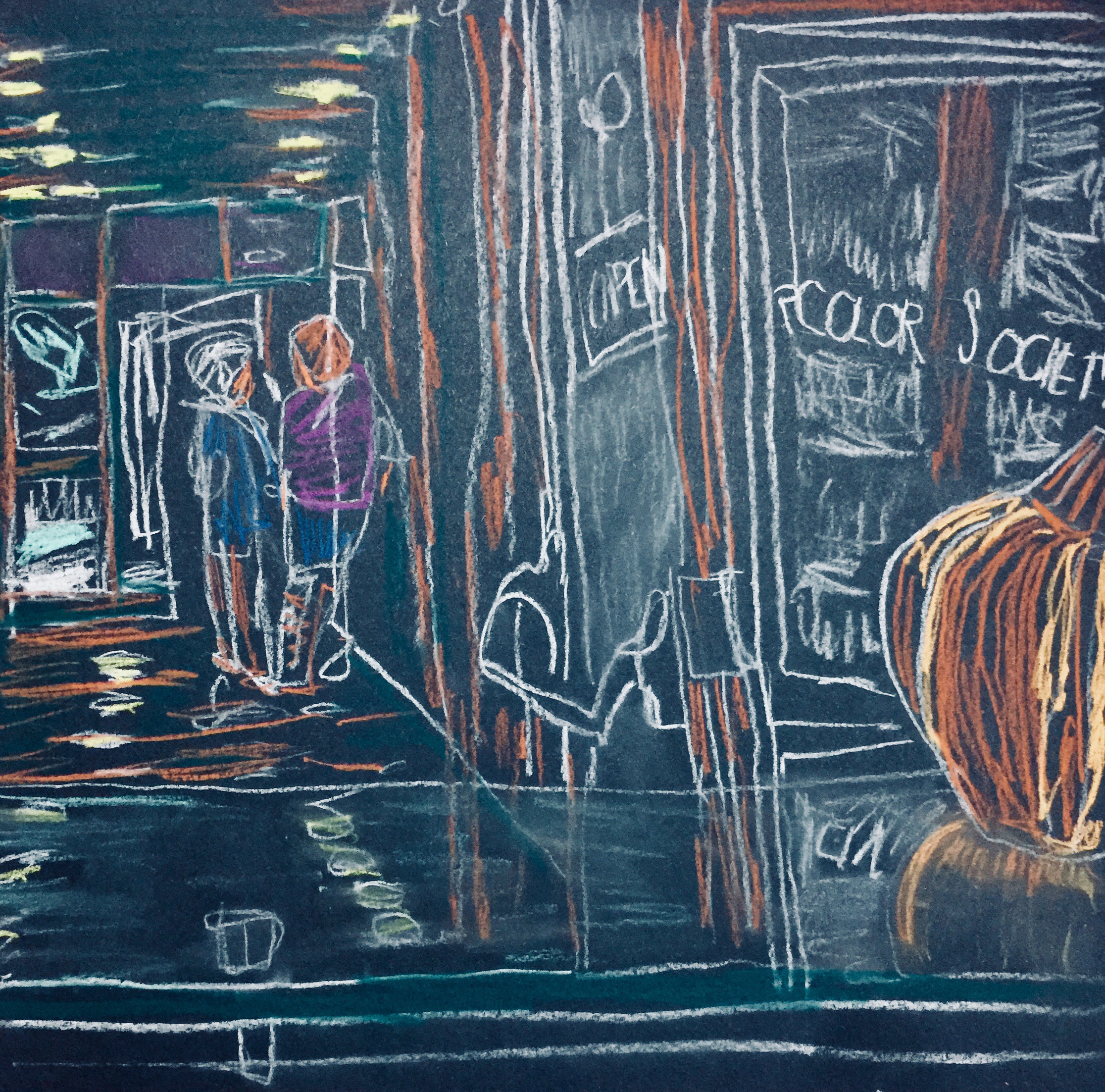 Sketch of the view from a gallery’s front desk by Sarah Sullivan