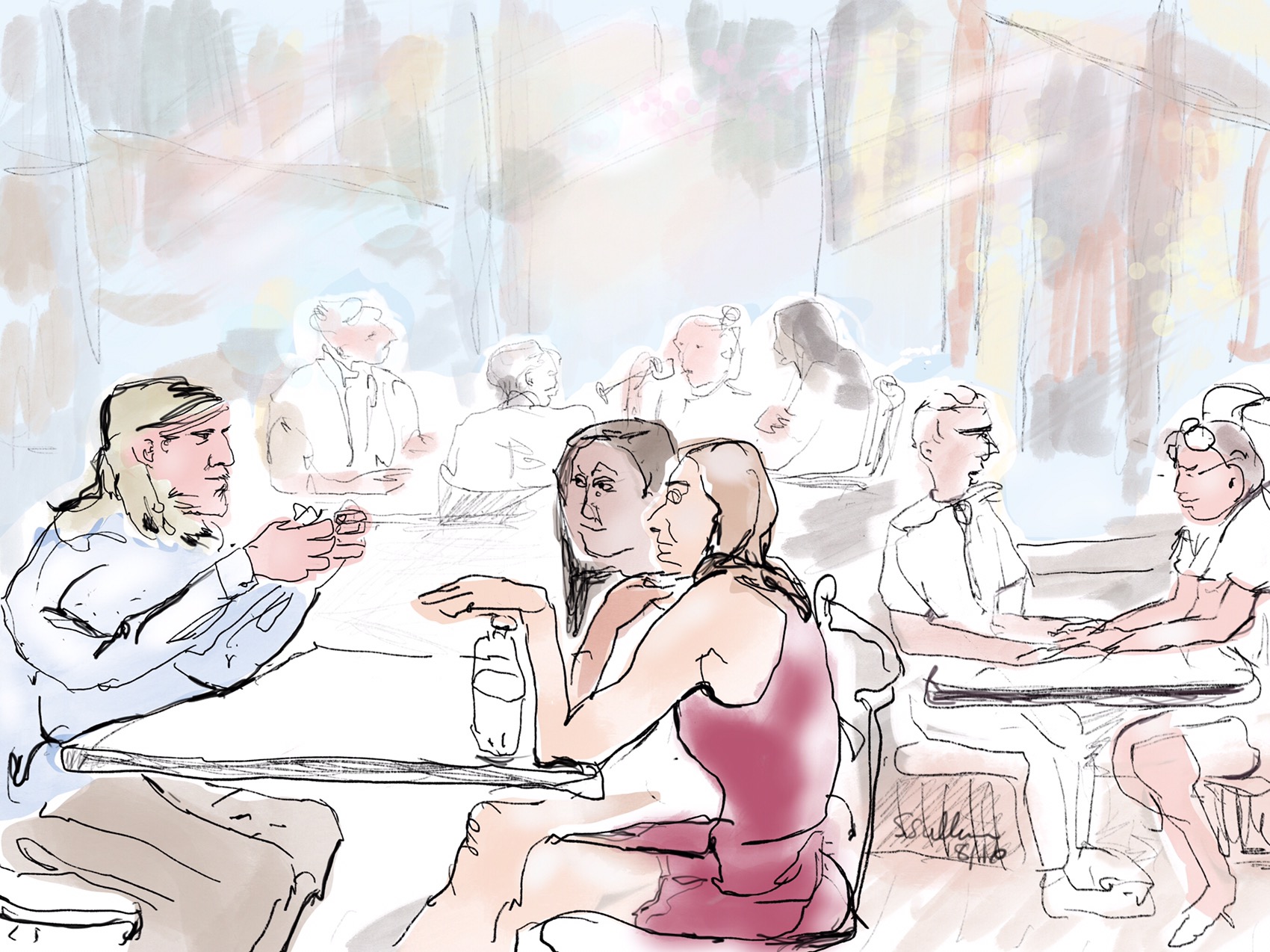 Sketch of people in a Chicago Restaurant by Sarah Sullivan