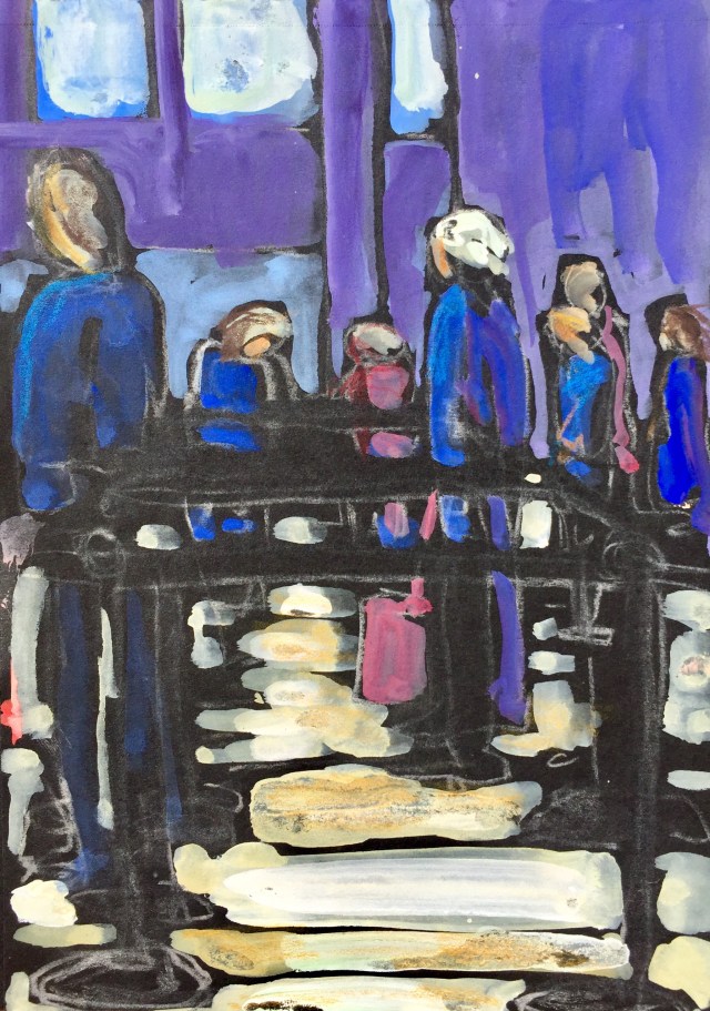 This sketch is also from our departure from the Azores but a bit later in the evening. Both of these two sketch are with gouache in a 9 X 9 sketchbook with black paper.