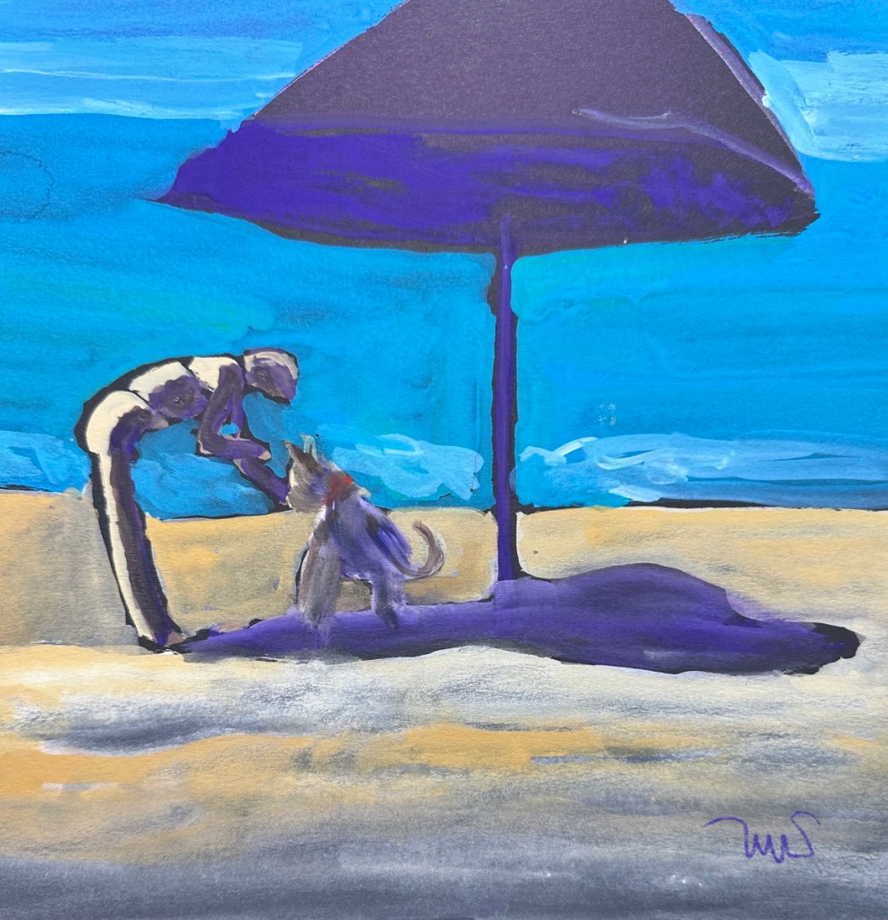On our last morning in San Pancho, my sister went down to the beach and took several interesting photos of her shadow. I was captivated by them and used one as a reference for this sketch.